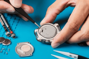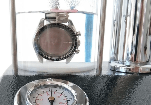 Fermeture du fond de boite et contrôle d’étanchéité de la montre.